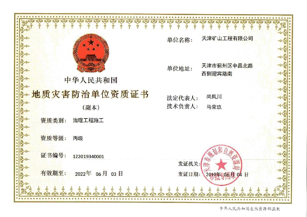 天津礦山工程有限公司(以下簡(jiǎn)稱公司)始建于1965年,隸屬中國(guó)建材集團(tuán)有限公司,是從事礦山總承包、礦山開采運(yùn)營(yíng)、礦山設(shè)計(jì)與咨詢、土石方爆破、生態(tài)恢復(fù)治理、鋼結(jié)構(gòu)制作安裝、機(jī)電設(shè)備安裝以及工程測(cè)量的專業(yè)化礦山施工企業(yè)和礦山開采運(yùn)營(yíng)總承包服務(wù)商。具備礦山總承包和爆破雙一級(jí)資質(zhì)。 公司始建于1965年,總部位于天津市···